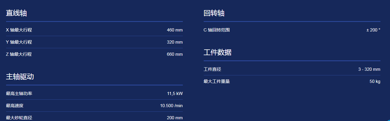 HELITRONIC RAPTOR 是有效磨削和修磨旋轉 對稱型刀具的理想入門級機器,而且占地面 積較小。適用于直徑為 3 至 320 mm、含端面 加工的刀具長度最大為280 mm、單件重量最 大為 50 kg 的刀具。