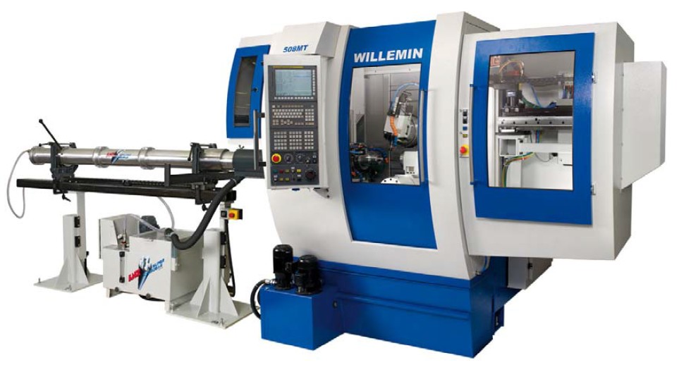 機(jī)床配置 HSK-E40刀庫和換刀機(jī)構(gòu) ■48刀位(可選72刀位)■10個(gè)刀位可用于定向刀具,類似刀位的增加可選■刀對(duì)刀換刀時(shí)間0.8秒■切屑到切屑換刀時(shí)間3秒 ■姐妹刀、刀具壽命、刀補(bǔ)參數(shù)等的智能刀具管理 A軸分度頭 ■銑削模式轉(zhuǎn)速為300rpm■車削模式轉(zhuǎn)速為sO00rpm■連續(xù)扭矩72Nm■功率7.5kW■錐面規(guī)格A4 ■至40巴時(shí)的液壓縮緊力為40000N■通孔直徑42mm(選項(xiàng)Φ50mm)作為標(biāo)準(zhǔn)配置提供的有圓型、方型、多面體棒料或單個(gè)毛坯加工用的各種類型的夾具,根據(jù)個(gè)別需要還可選擇性提供其它適用的夾緊裝置。 CNC數(shù)控系統(tǒng) Fanuc31-A5數(shù)控系統(tǒng)為高效率的508MT機(jī)床提供了相應(yīng)的技術(shù).最佳刀具軌跡的斜面加工軟件的使用簡化了編程. 數(shù)字式背面加工裝置 具有兩種配置: 0°-90° 擺動(dòng)的單工位加工單元,可配置■副主軸/分度頭■或自定心虎鉗■或尾座 帶有3工位的塔座 用于塔座定位的高精度機(jī)械鎖緊: ■副主軸/分度頭+自定心虎鉗+尾座,或 ■副主軸/分度頭+2個(gè)自定心虎鉗,或 ■2個(gè)自動(dòng)定心虎鉗+尾座,留出一個(gè)工位以確保電主軸轉(zhuǎn)至90°的位置。 副主軸/帶C軸的分度頭 ■可于水平、垂直或任意位置使用■銑削模式的轉(zhuǎn)速為300rpm■s1/s6扭矩:10/16Nm■車削模式的轉(zhuǎn)速為6000rpm ■s1/s6功率:5.8/8.6kW■鎖緊力8500N■聯(lián)動(dòng)加工模式■高分辨率的直接測量■適用的夾緊系統(tǒng) 虎鉗 ■可于水平、垂直或任意位置使用■液壓式自定心虎鉗■夾緊力可調(diào)■機(jī)床上的卡爪加工 尾座 ■固定式或旋轉(zhuǎn)式尾座■等于棒料直徑10倍的工件夾持■扭矩控制 空位 ■保留一個(gè)工位空缺,以允許電主軸轉(zhuǎn)至90°位置后的加工 |