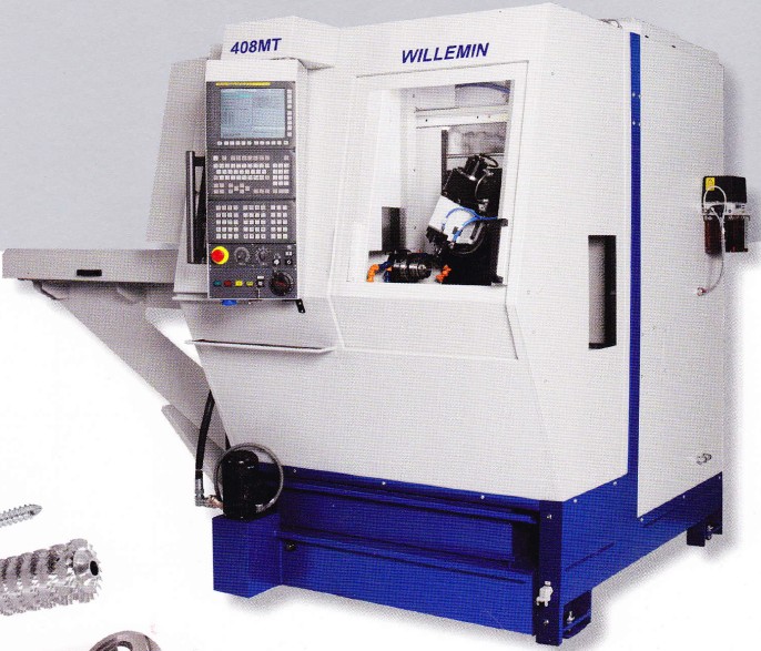 408|408MT-棒料力口工 最新一代的⒃8B和鍆8MT以其獨特的方式將棒料ø32mm(408MT可擴(kuò)展至ø36mm∫ 408B至ø40mm)的加工技術(shù)與全自動背面加工裝置的柔性予以了完美的結(jié)合。高 性能電主軸尤為適合高需求的加工應(yīng)用。高精度臥式軸分度頭具有雙重功能,低速運轉(zhuǎn)時是個轉(zhuǎn)臺,而高速運轉(zhuǎn)時即是一個車主軸(408MT)。 ■適用于加工中至大批量復(fù)雜零件。 ■背面加工裝置帶自定心虎鉗夾緊或夾頭夾緊(內(nèi)/外夾緊) ■通過棒料進(jìn)給和自動卸載零件以及零件的準(zhǔn)備,達(dá)到大批量加工的效果。 >在同一加工循環(huán)內(nèi)完成六面體的加工 >銑∫車棒料直徑達(dá)⑦32mm >高精度和高的表面質(zhì)量 機(jī)床結(jié)構(gòu) ■擺動式主軸 ■最佳動態(tài)和靜態(tài)剛性的高強(qiáng)度的鑄鐵床身,封閉式結(jié)構(gòu),并帶加強(qiáng)筋間隔。 ■采用隔離鋼板將機(jī)床的機(jī)械區(qū)域與加工區(qū)域徹底分開以降低結(jié)構(gòu)熱脹。 ■機(jī)床的主結(jié)構(gòu)以及外圍輔助設(shè)各均衡地置于框架上。 各軸的行程 X =250mm Y =200mm Z =300mm A=360° ∫408MT∶ s2=6IO00minˉ 1 B =-15° ∫十100° U =80mm W=360°(408B為選項) |